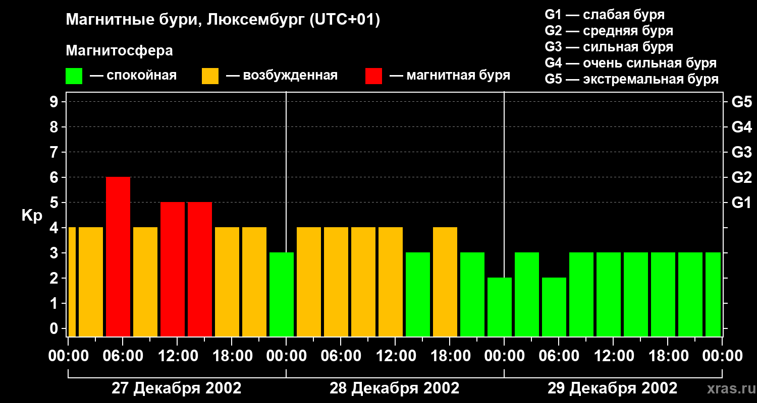 Магнитные бури в Люксембурге — 29 декабря 2002 года