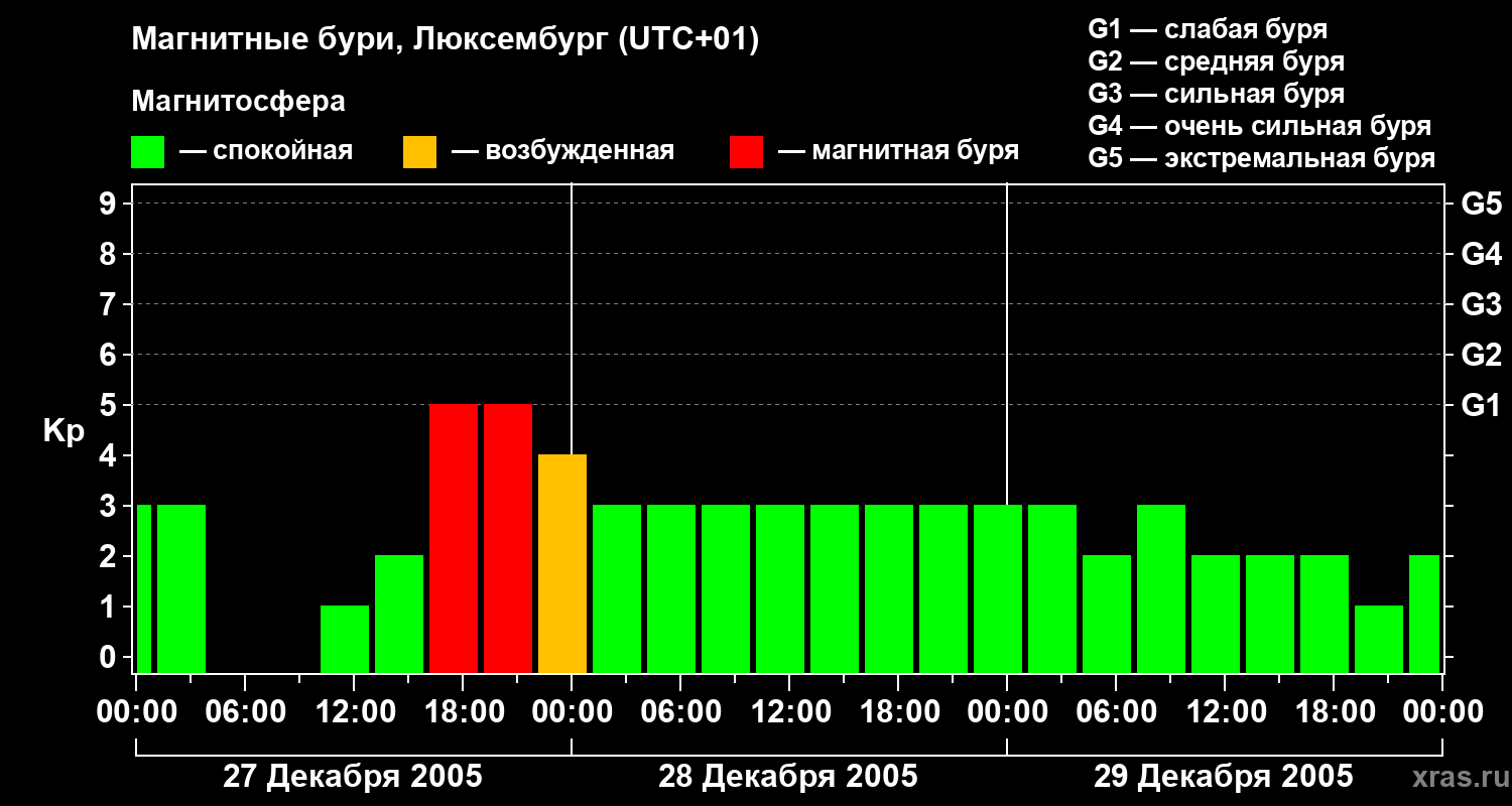 Магнитные бури в Люксембурге — 29 декабря 2005 года