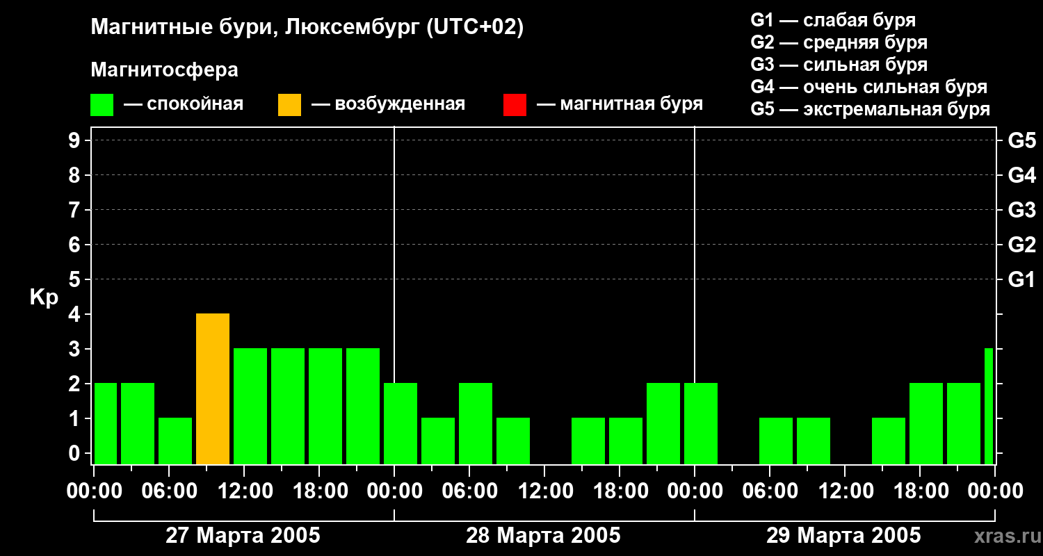 Магнитные бури в Люксембурге — 29 марта 2005 года