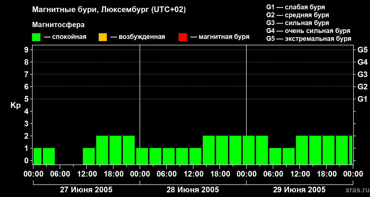 Магнитные бури в Люксембурге — 29 июня 2005 года