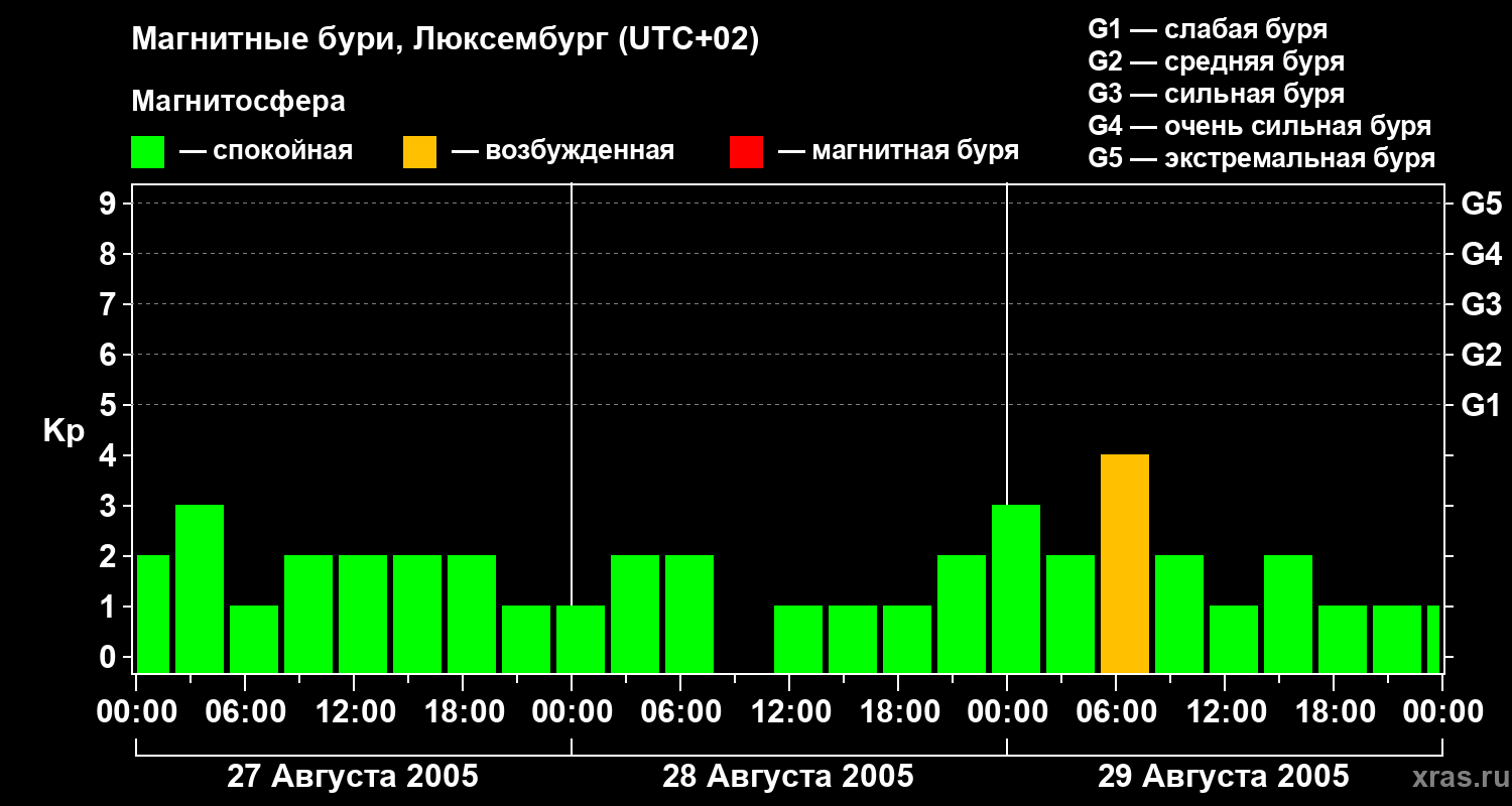 Магнитные бури в Люксембурге — 29 августа 2005 года