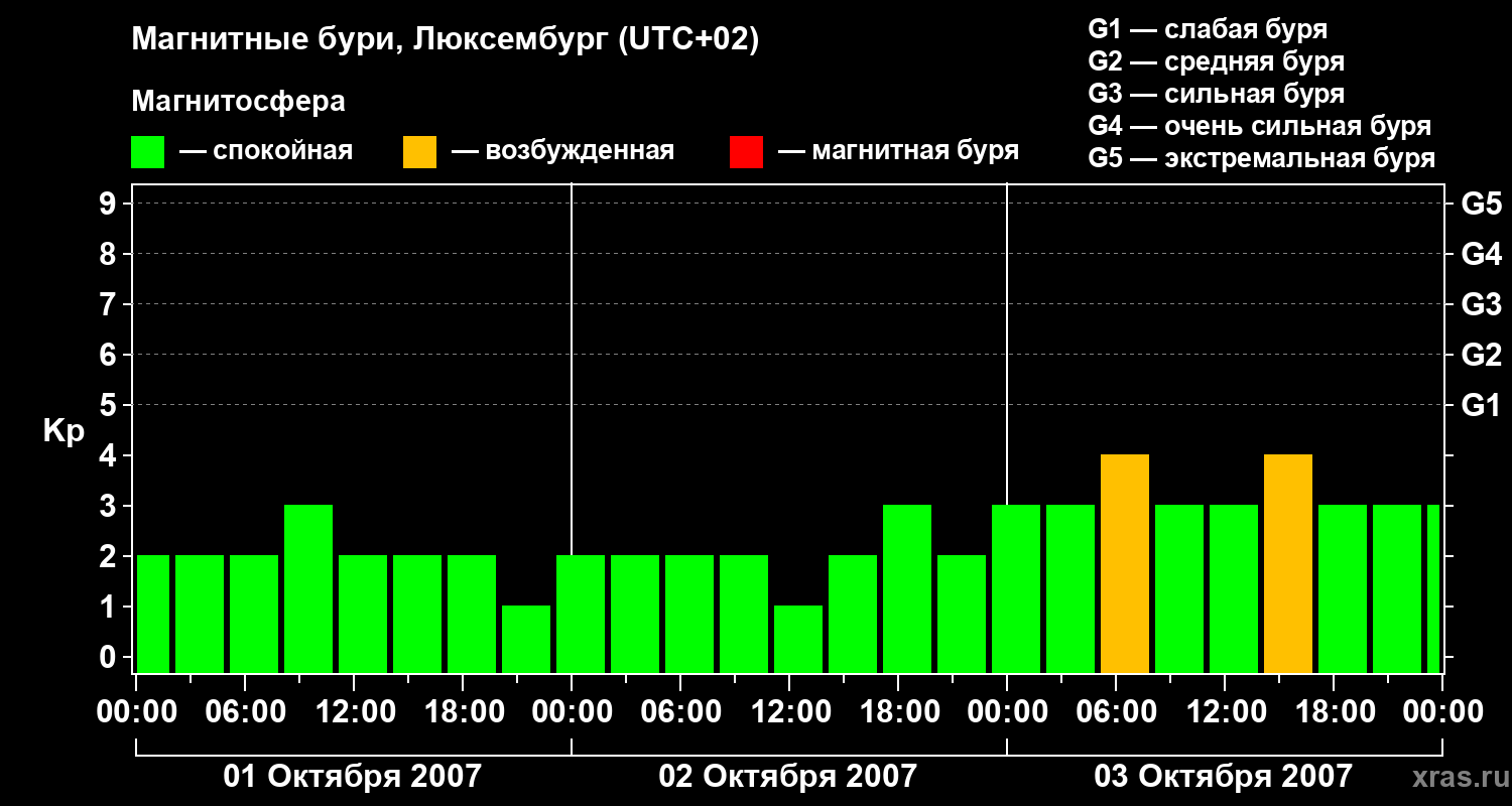 Магнитные бури в Люксембурге 3 октября 2007 года