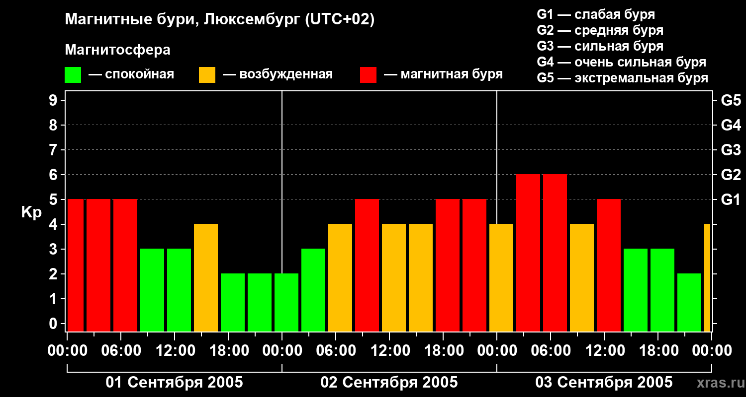 Магнитные бури в Люксембурге — 3 сентября 2005 года