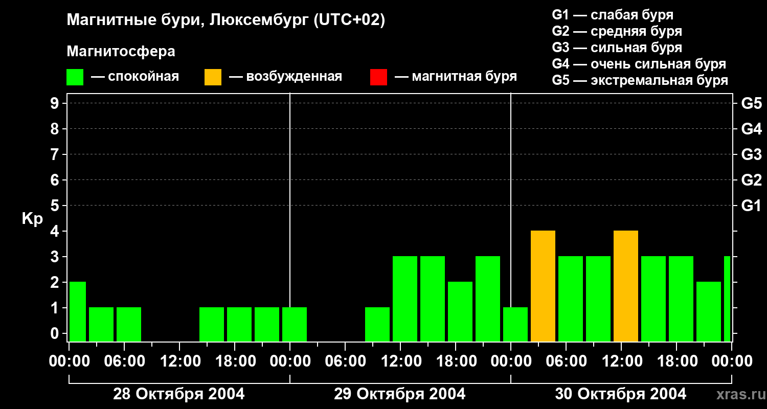 Магнитные бури в Люксембурге — 30 октября 2004 года