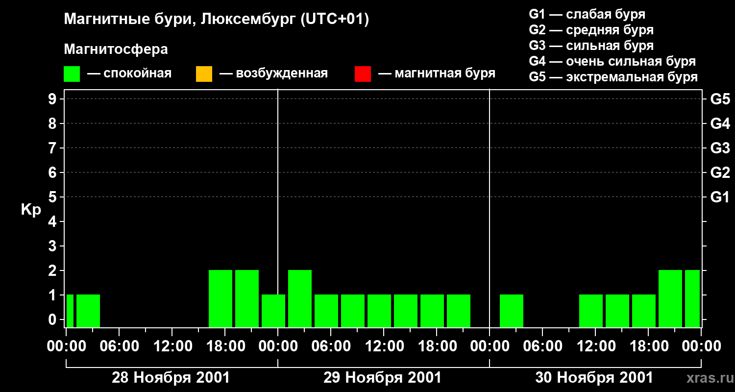 Магнитные бури в Люксембурге — 30 ноября 2001 года