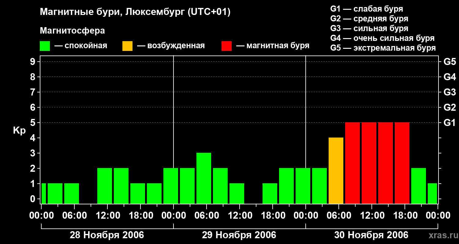 Магнитные бури в Люксембурге — 30 ноября 2006 года