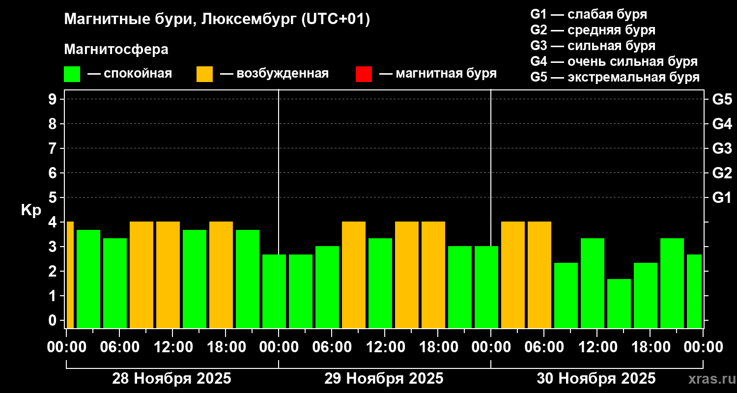 Магнитные бури в Люксембурге 30 ноября 2025 года