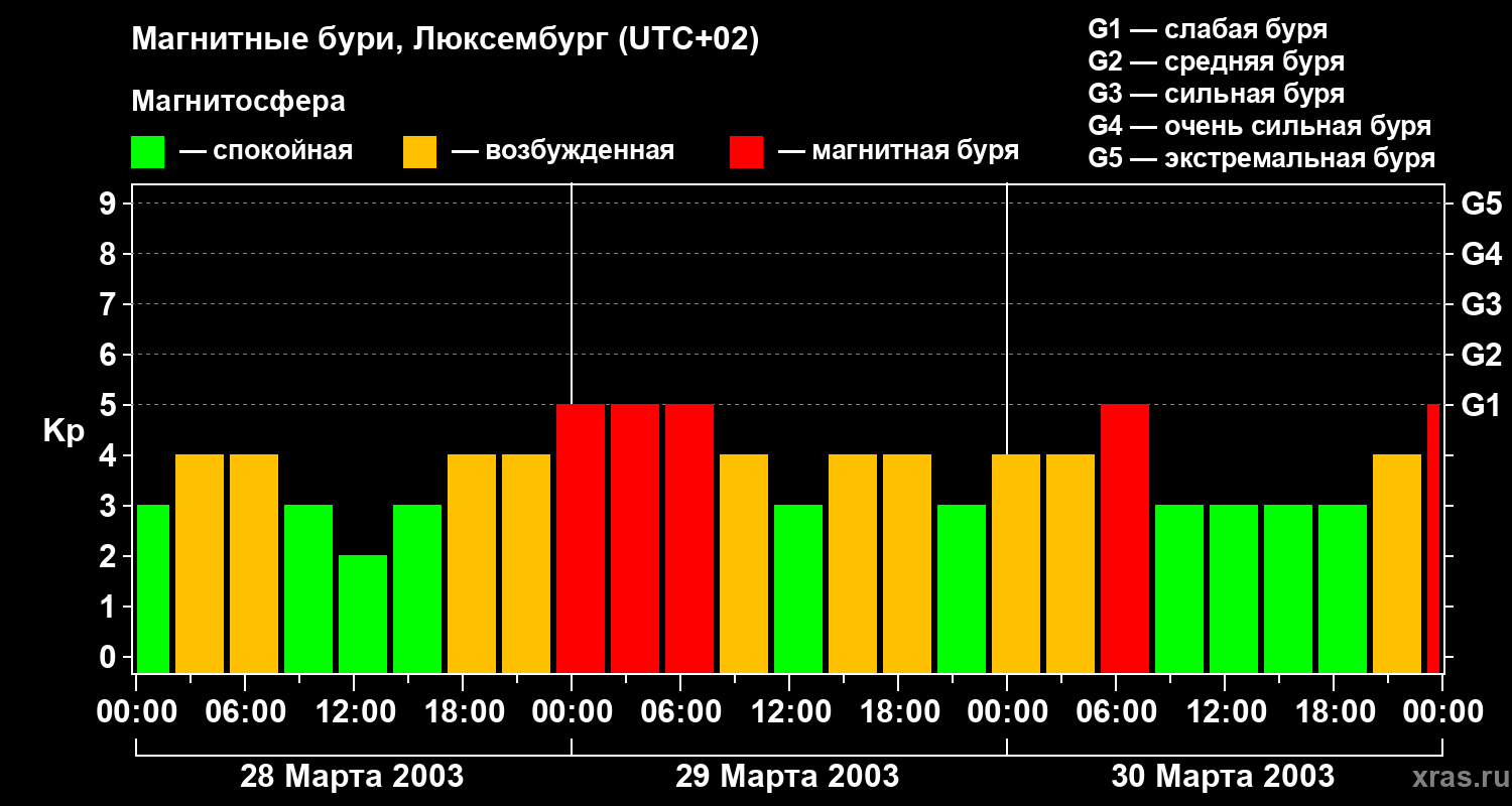 Магнитные бури в Люксембурге — 30 марта 2003 года