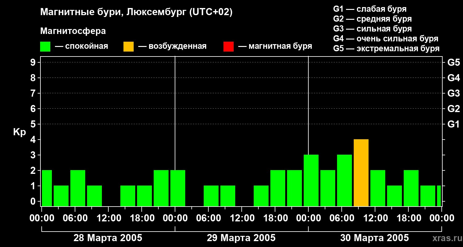 Магнитные бури в Люксембурге — 30 марта 2005 года