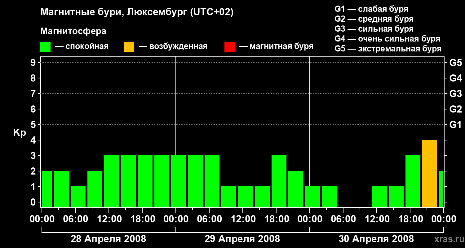 Магнитные бури в Люксембурге — 30 апреля 2008 года