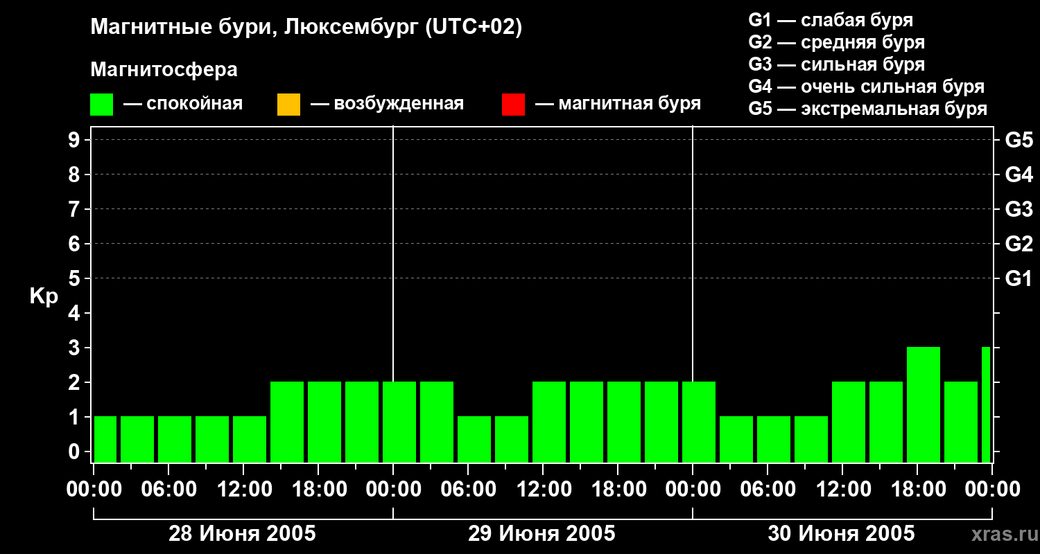Магнитные бури в Люксембурге — 30 июня 2005 года