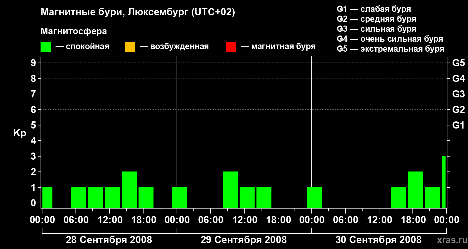 Магнитные бури в Люксембурге — 30 сентября 2008 года