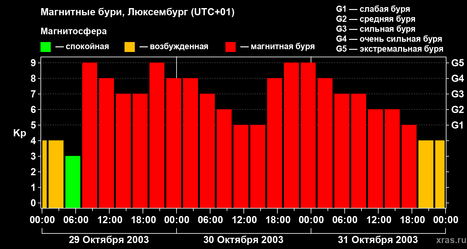 Магнитные бури в Люксембурге — 31 октября 2003 года