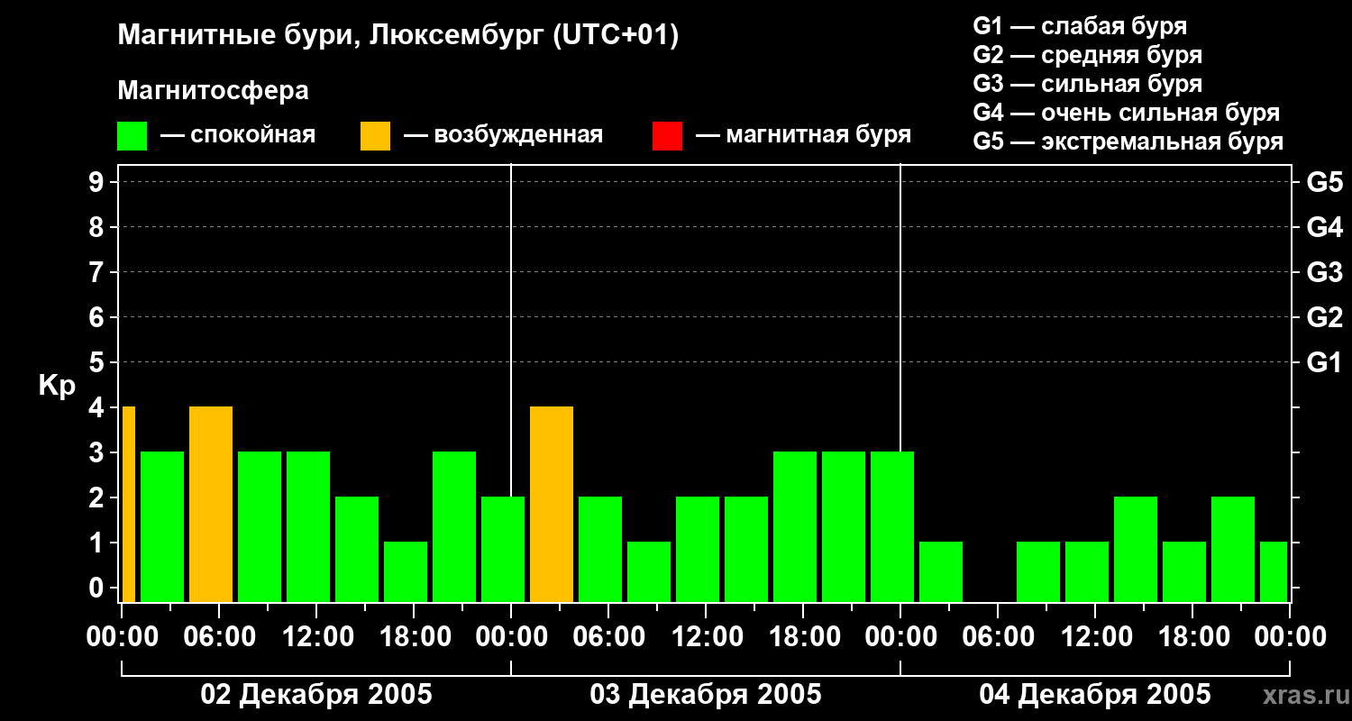 Магнитные бури в Люксембурге — 4 декабря 2005 года