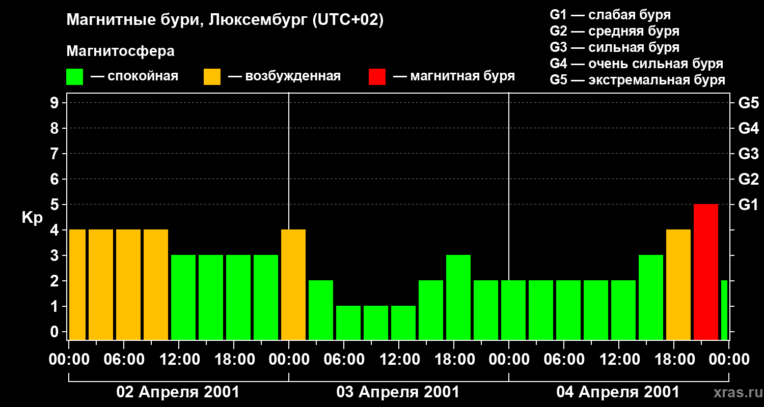 Магнитные бури в Люксембурге 4 апреля 2001 года