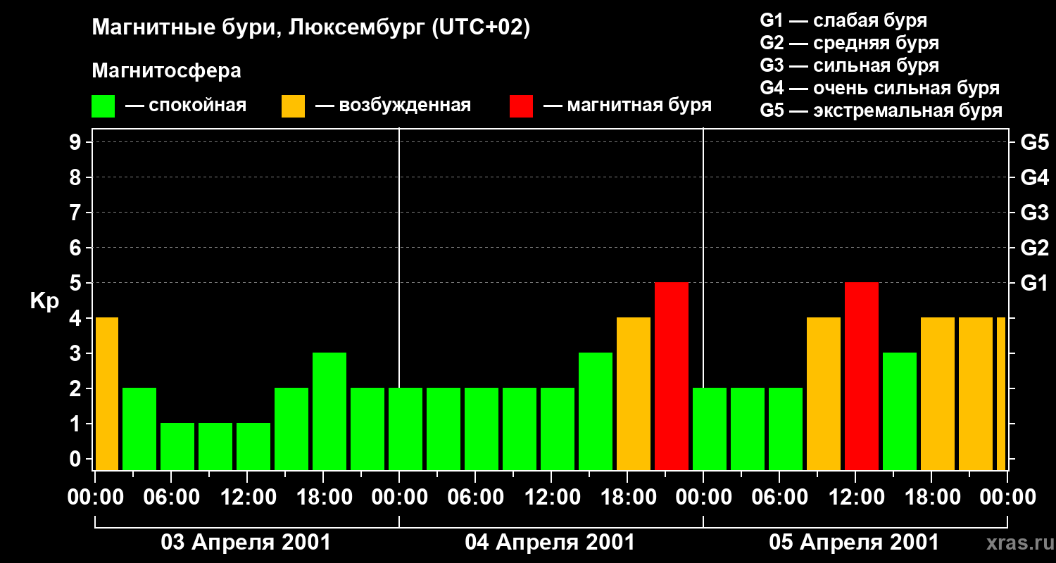 Магнитные бури в Люксембурге — 5 апреля 2001 года