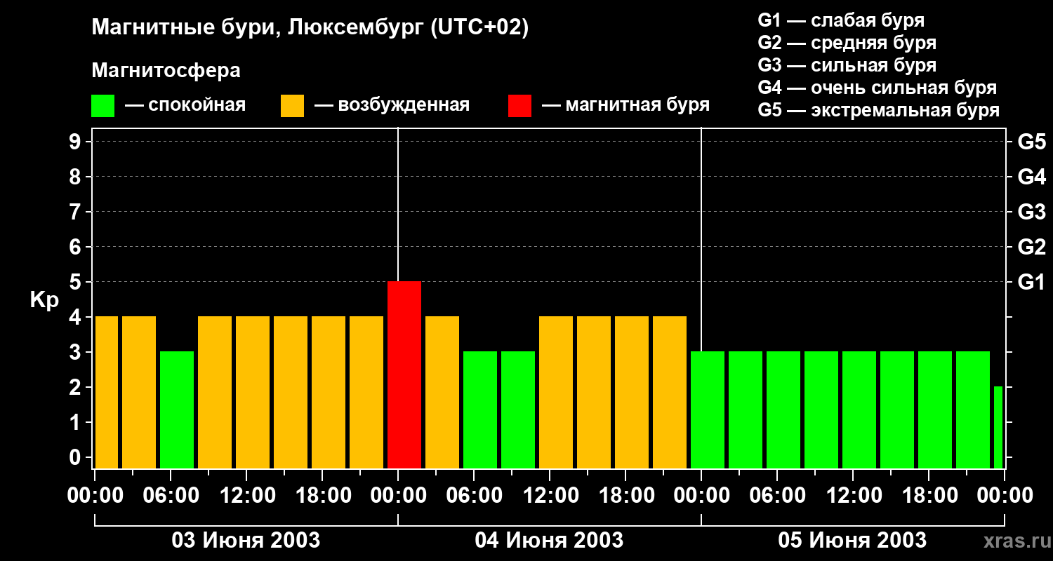 Магнитные бури в Люксембурге — 5 июня 2003 года