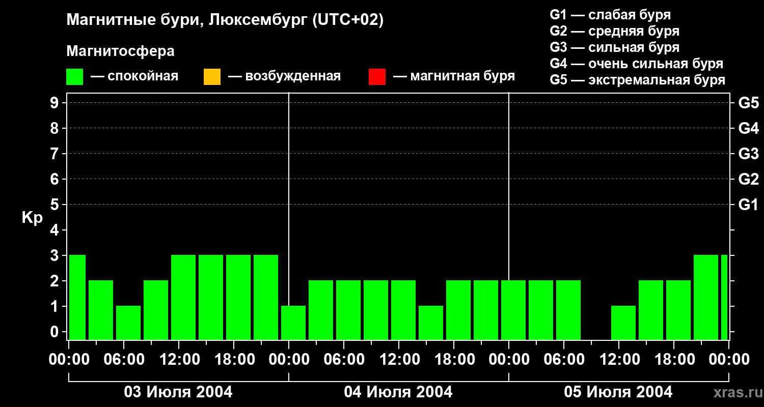 Магнитные бури в Люксембурге — 5 июля 2004 года
