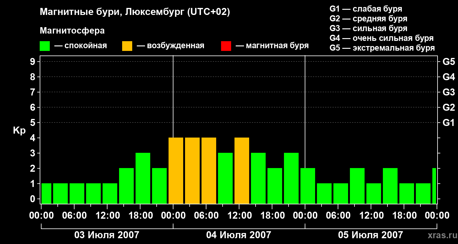 Магнитные бури в Люксембурге — 5 июля 2007 года