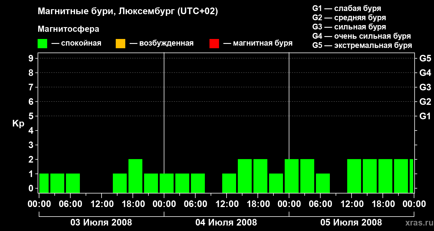 Магнитные бури в Люксембурге — 5 июля 2008 года