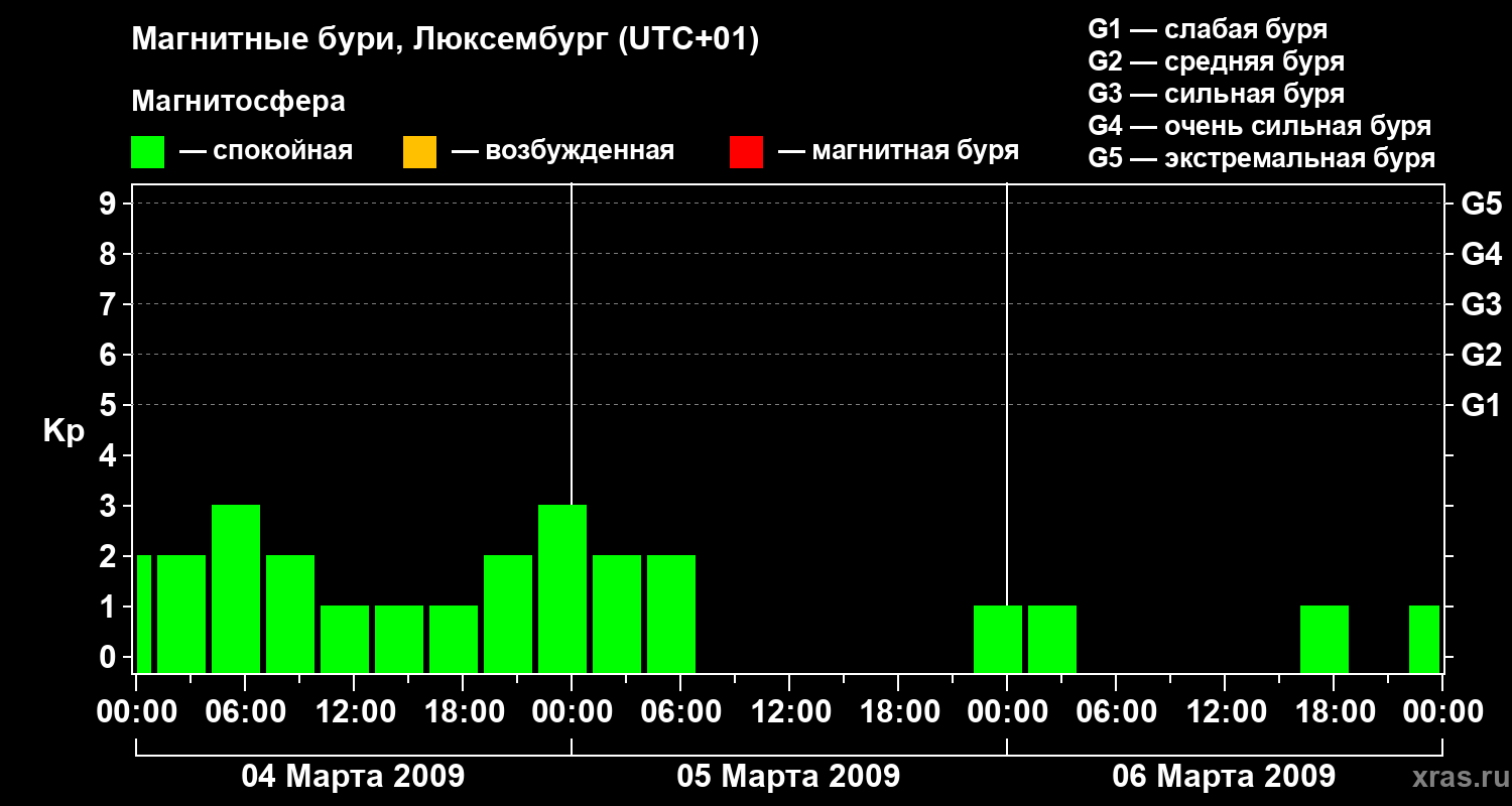 Магнитные бури в Люксембурге 6 марта 2009 года