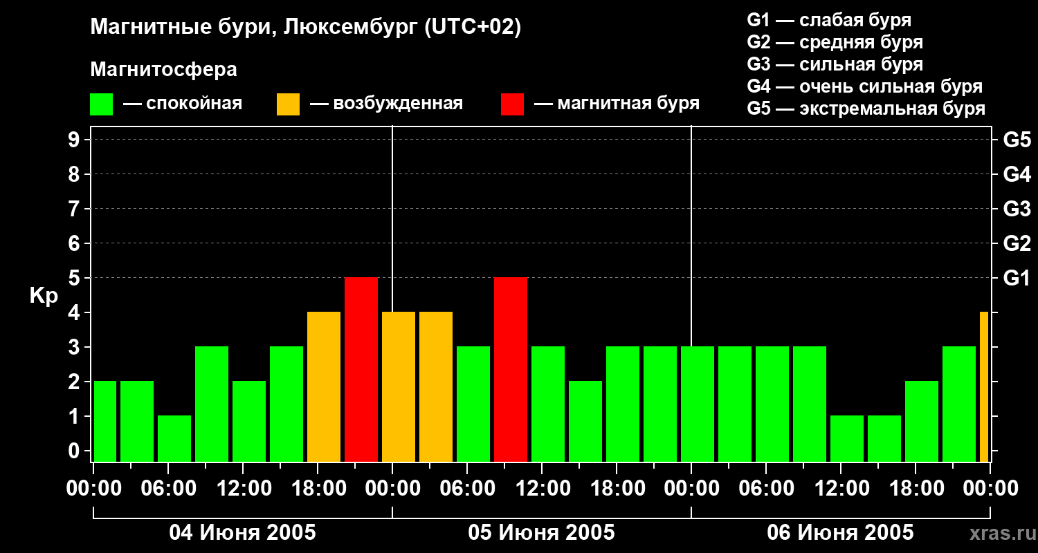 Магнитные бури в Люксембурге — 6 июня 2005 года
