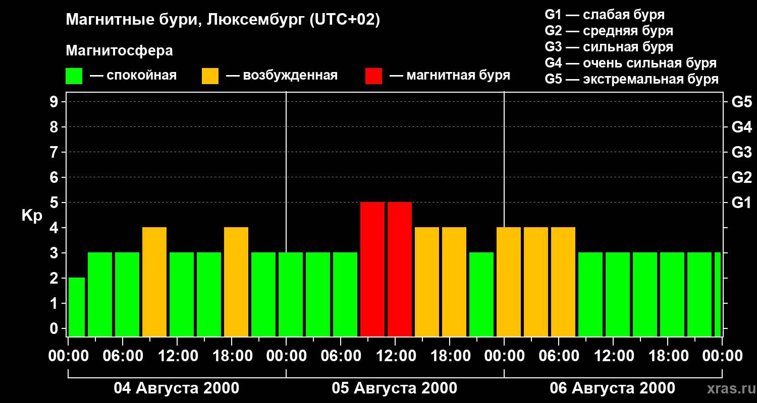 Магнитные бури в Люксембурге — 6 августа 2000 года