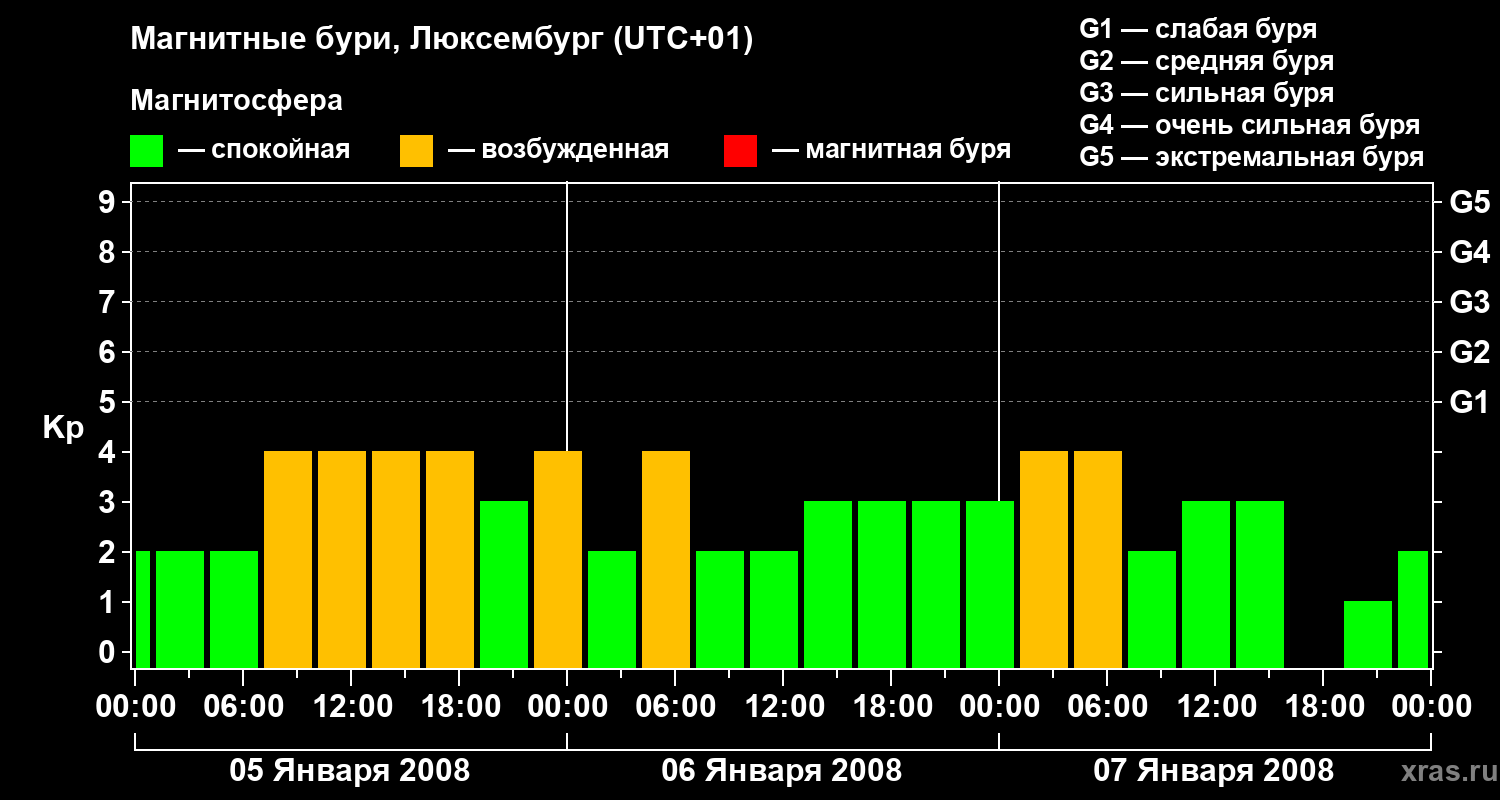 Магнитные бури в Люксембурге — 7 января 2008 года