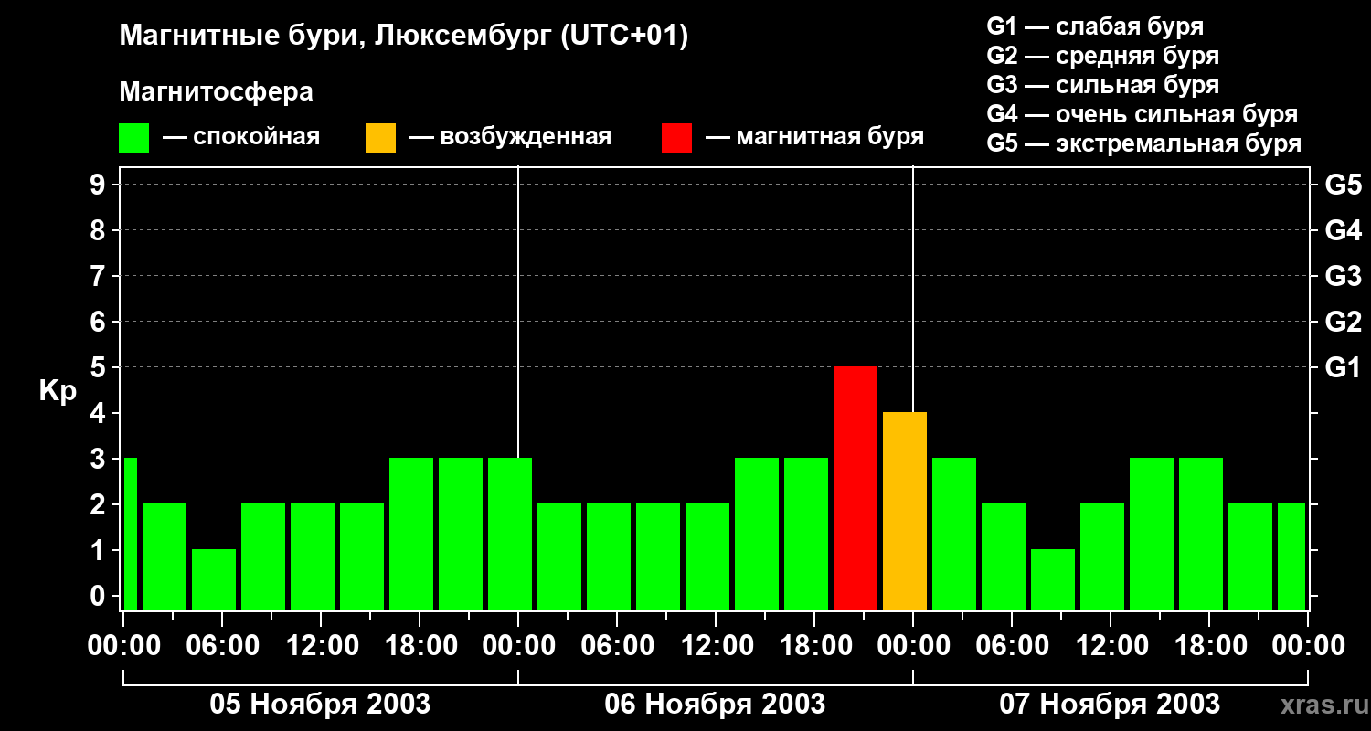 Магнитные бури в Люксембурге в ноябре 2003 года