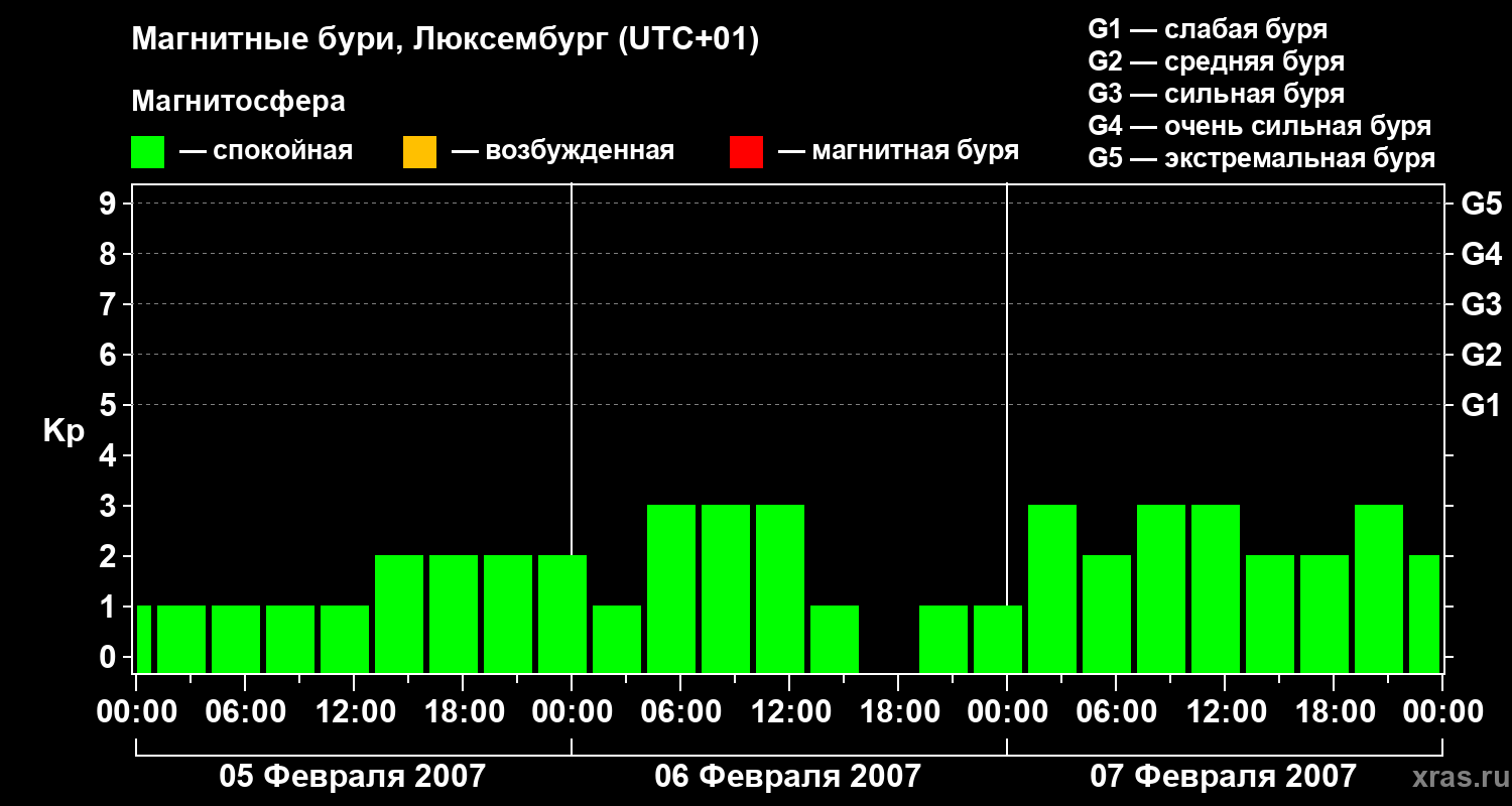 Магнитные бури в Люксембурге — 7 февраля 2007 года