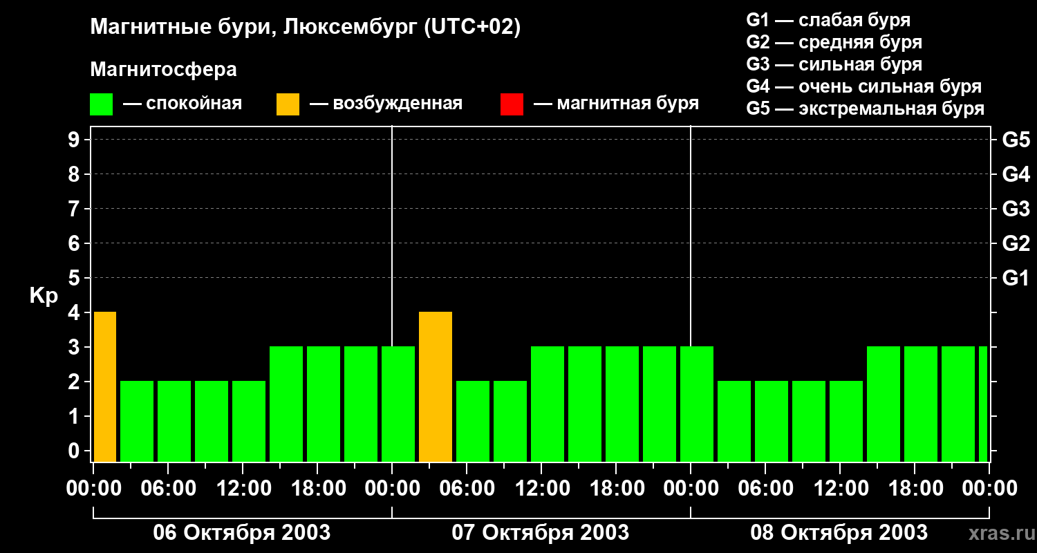 Магнитные бури в Люксембурге — 8 октября 2003 года