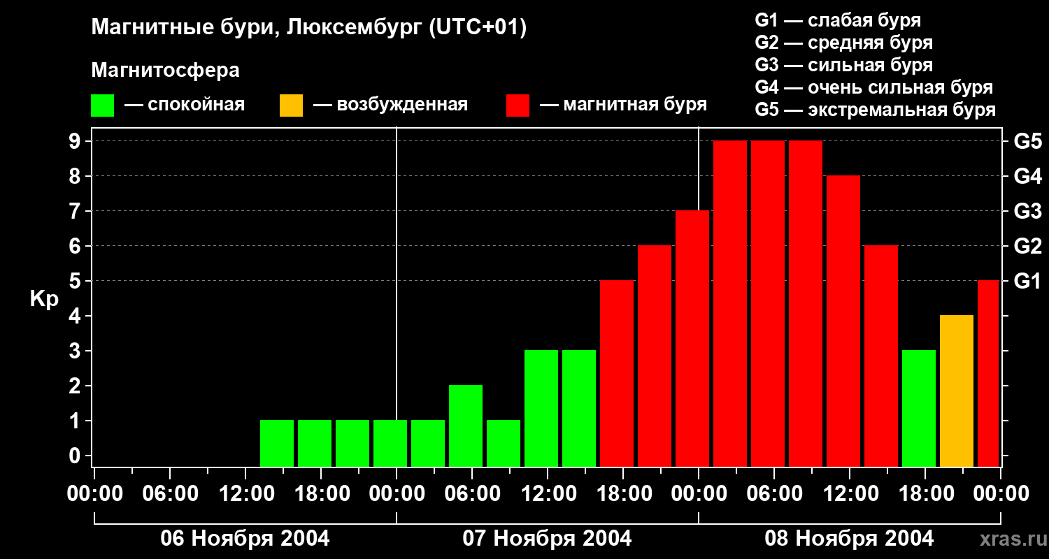 Магнитные бури в Люксембурге — 8 ноября 2004 года