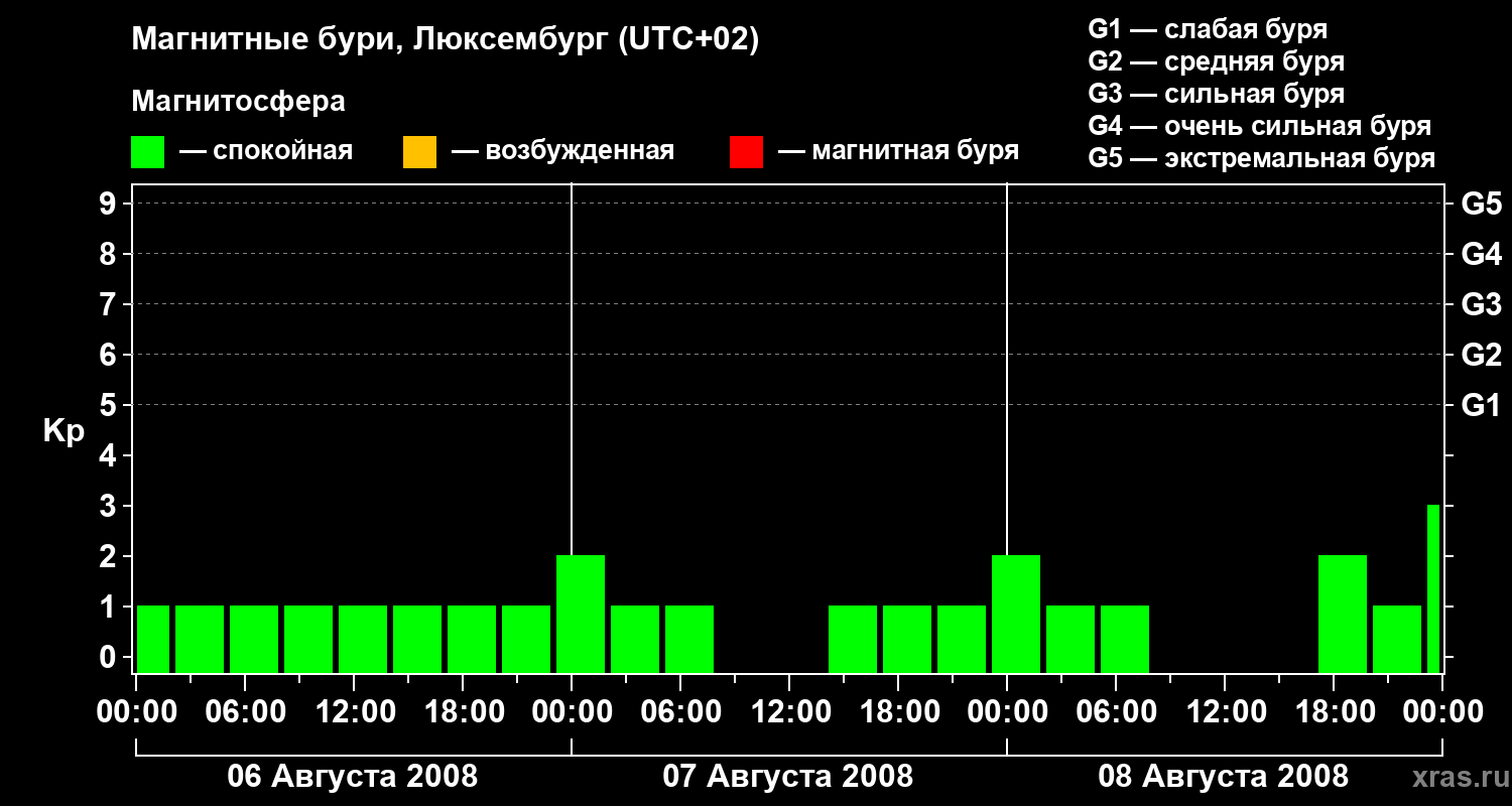 Магнитные бури в Люксембурге 8 августа 2008 года