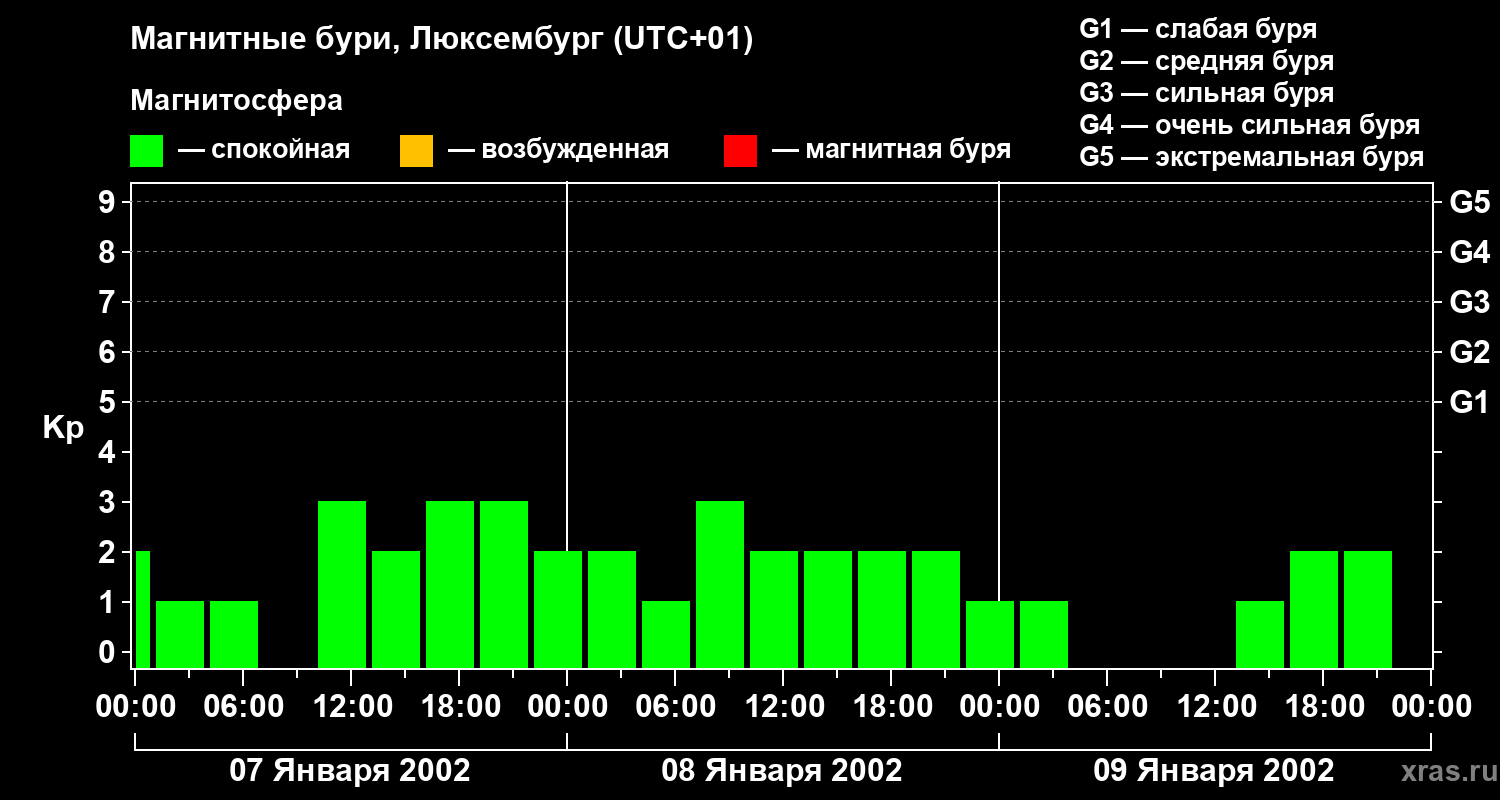 Магнитные бури в Люксембурге — 9 января 2002 года