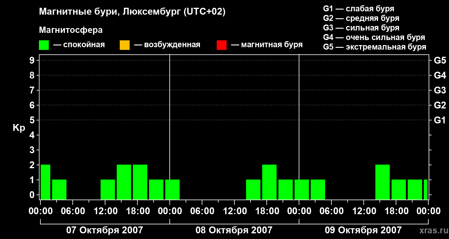 Магнитные бури в Люксембурге 9 октября 2007 года