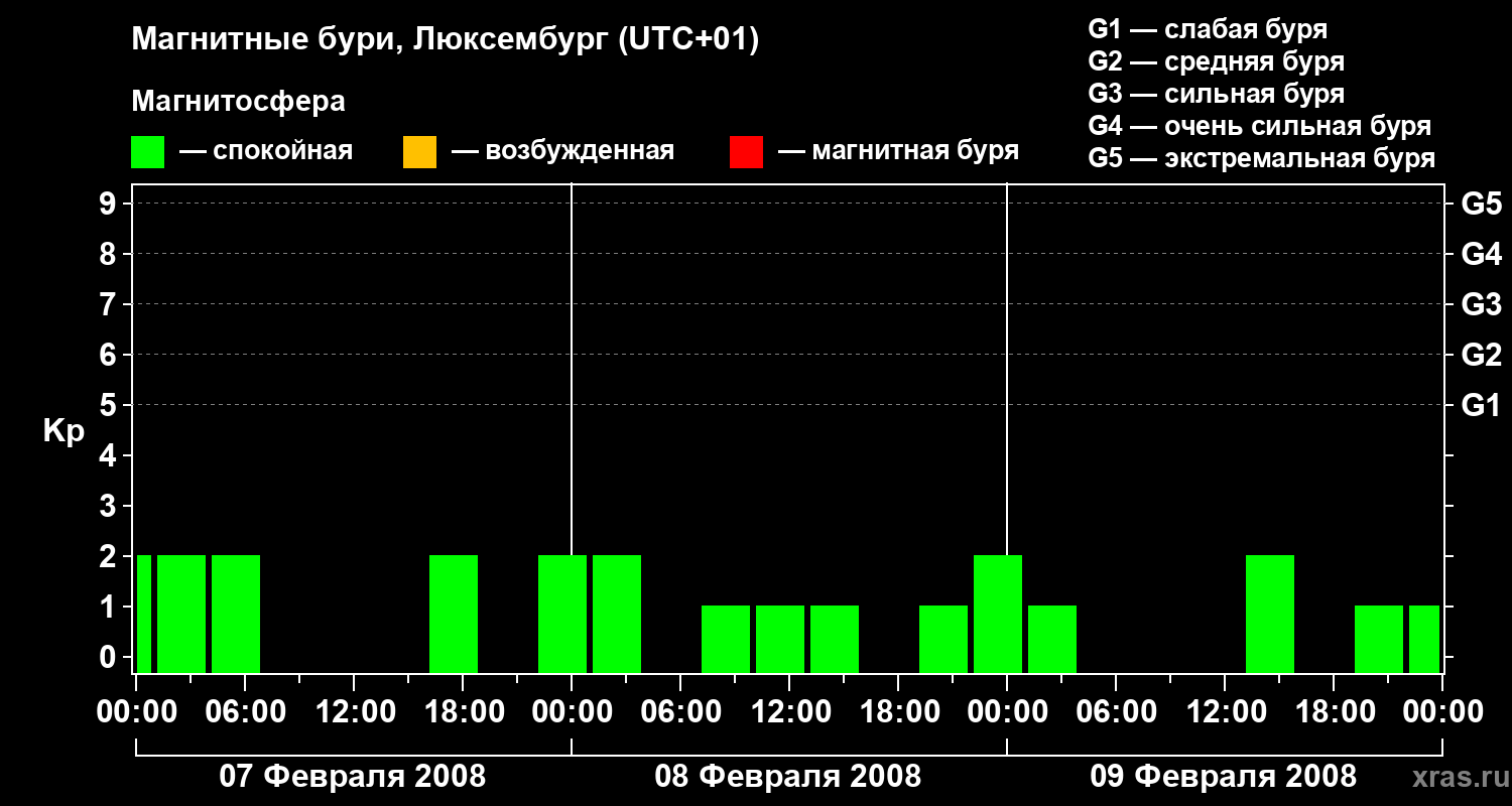 Магнитные бури в Люксембурге — 9 февраля 2008 года