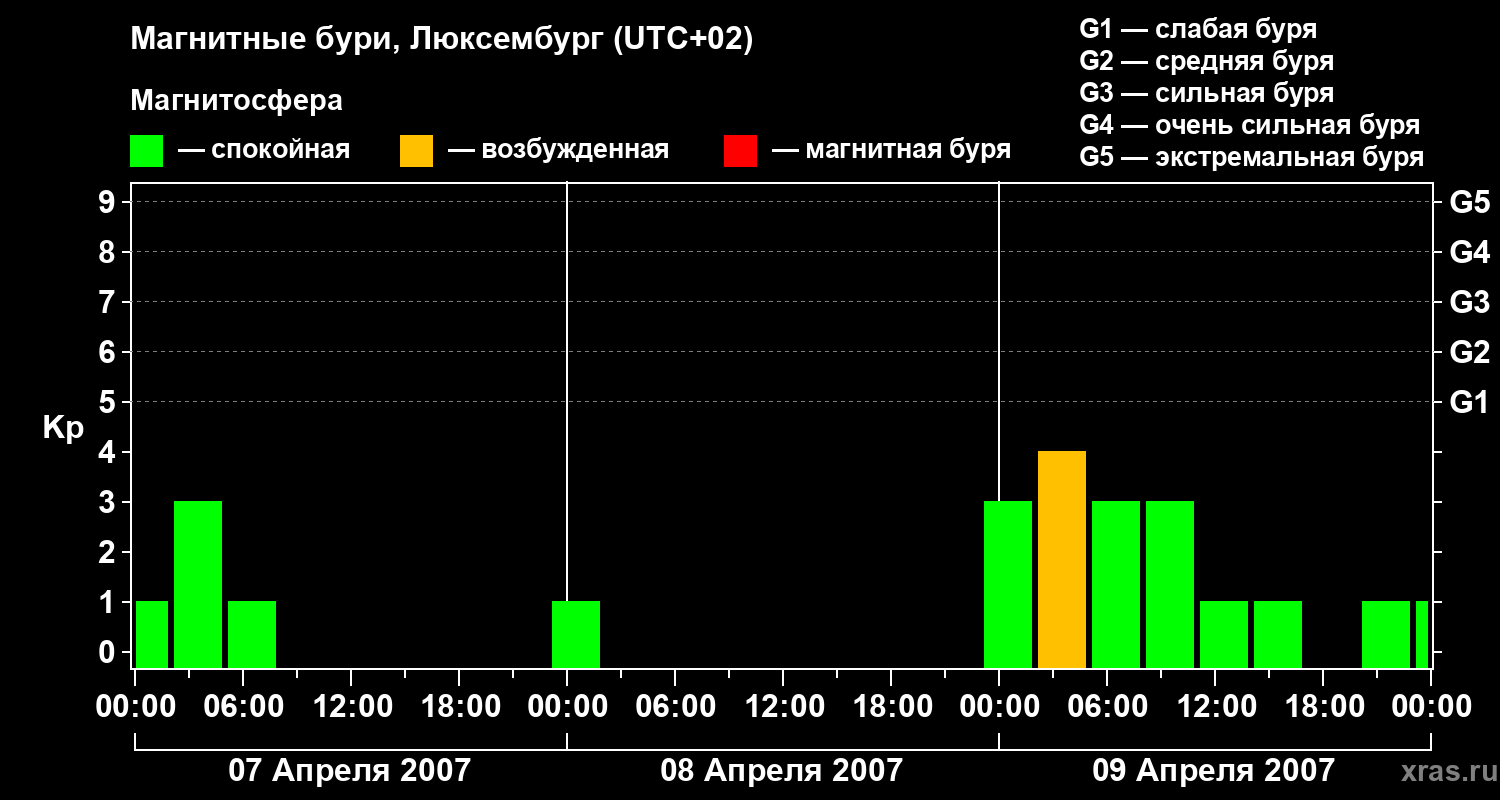 Магнитные бури в Люксембурге — 9 апреля 2007 года