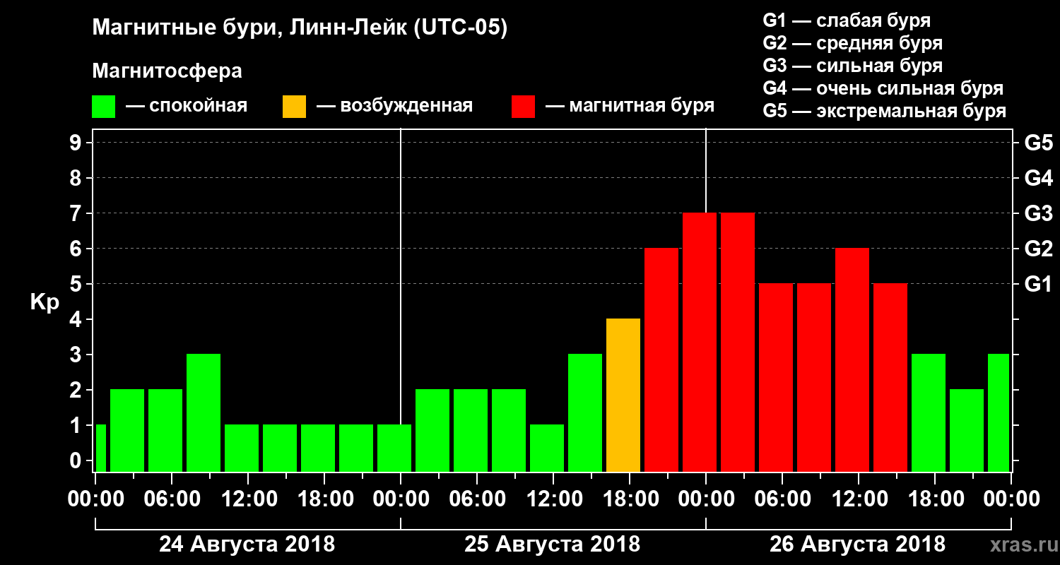 Магнитные бури в Линн-Лейке 26 августа 2018 года