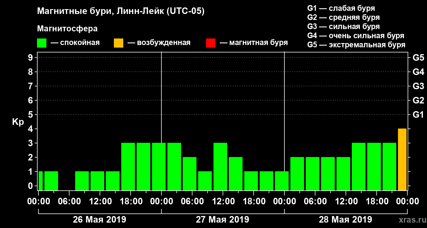 Магнитные бури в Линн-Лейке 28 мая 2019 года