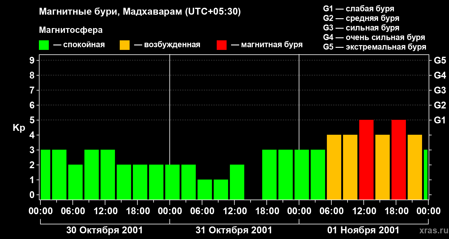 Магнитные бури в Мадхавараме 1 ноября 2001 года