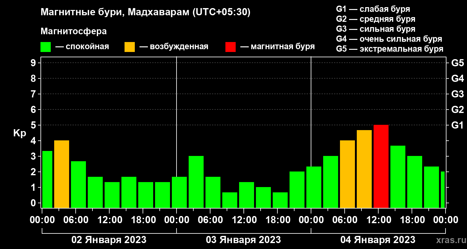 Магнитные бури в Мадхавараме 4 января 2023 года