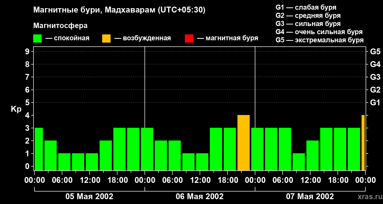 Магнитные бури в Мадхавараме 7 мая 2002 года