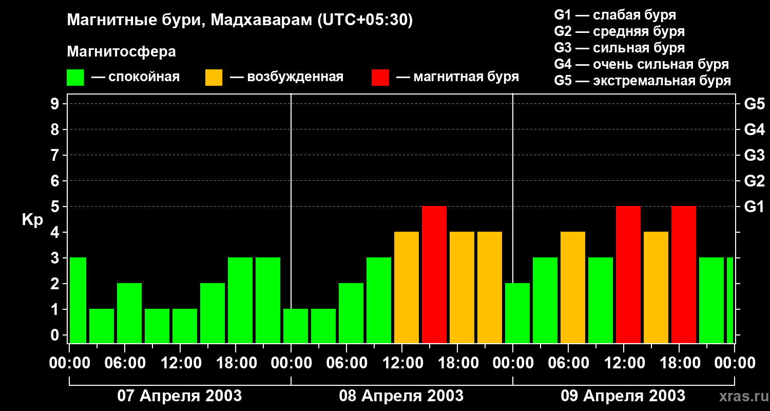 Магнитные бури в Мадхавараме 9 апреля 2003 года