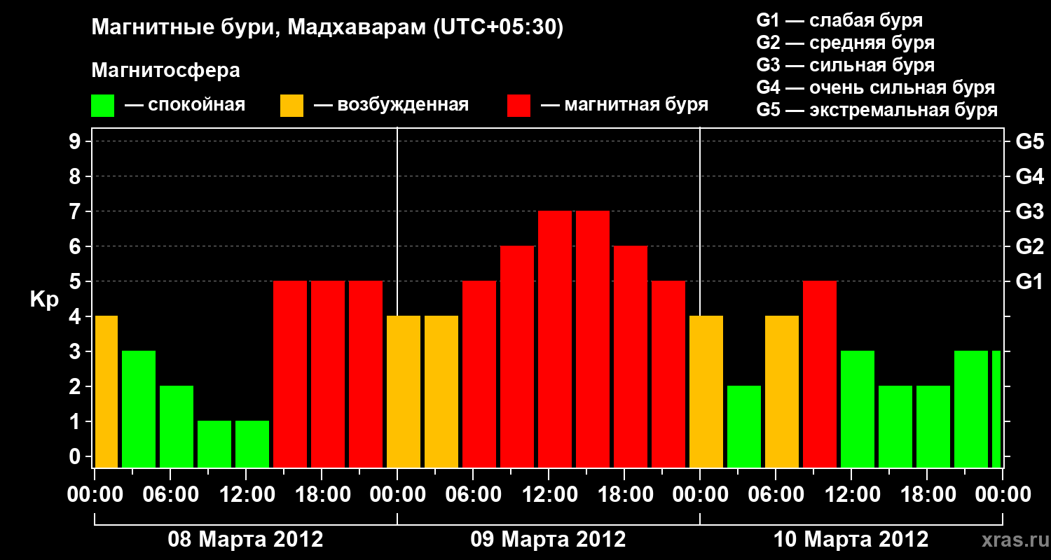 Магнитные бури в Мадхавараме в марте 2012 года