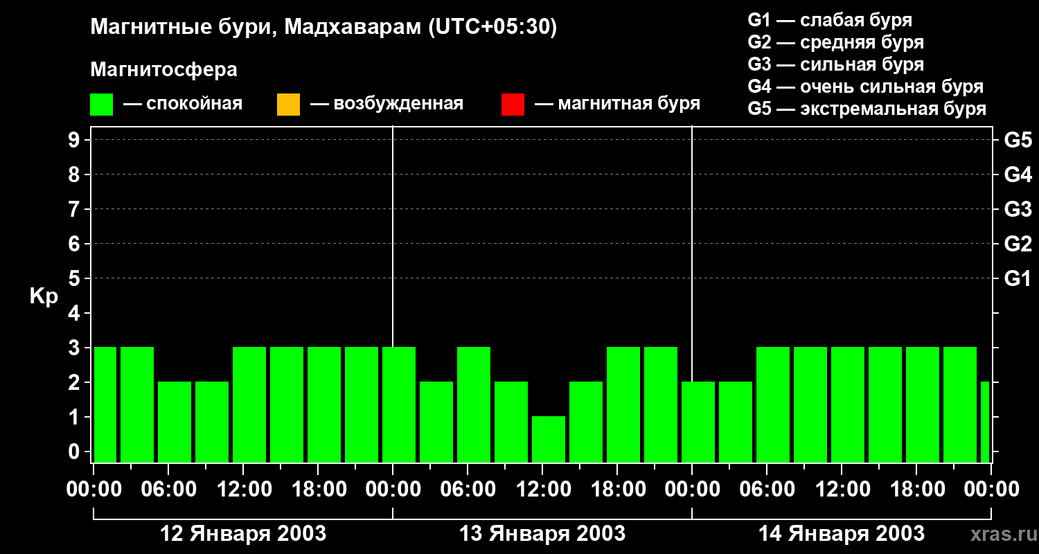 Магнитные бури в Мадхавараме 14 января 2003 года