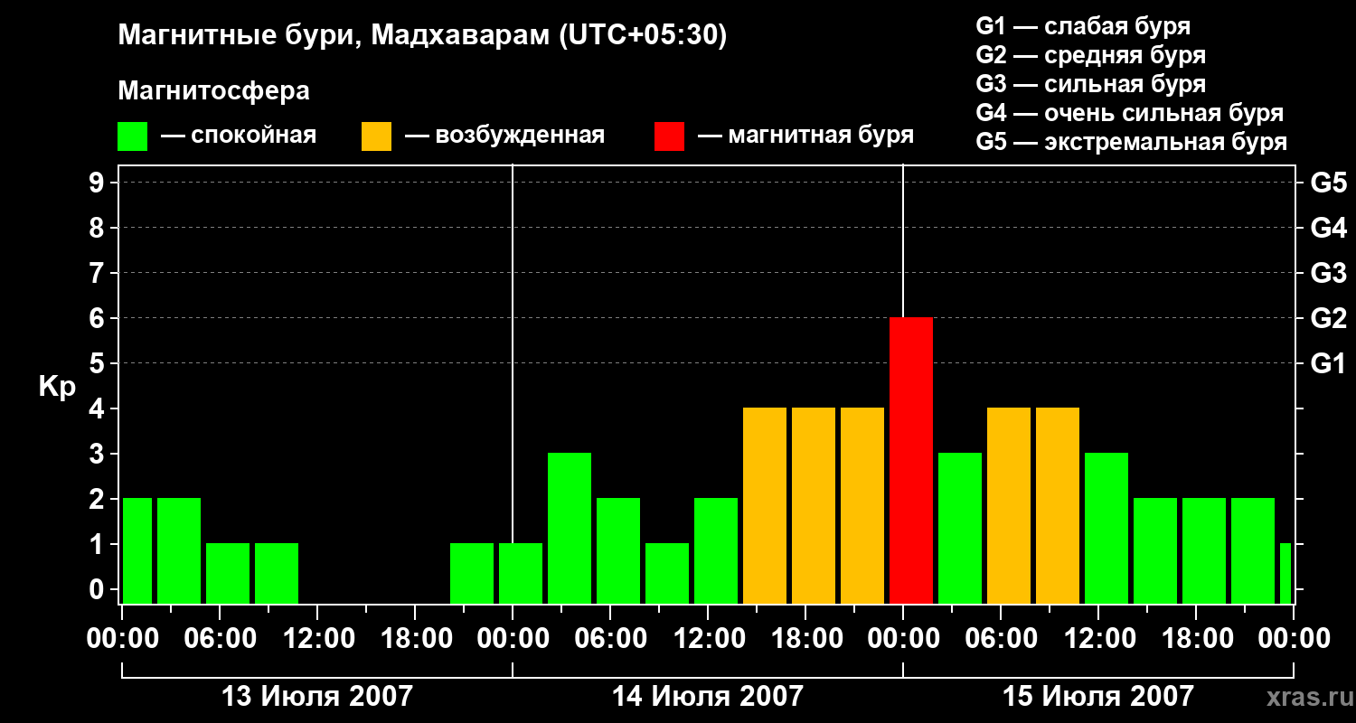 Магнитные бури в Мадхавараме 15 июля 2007 года