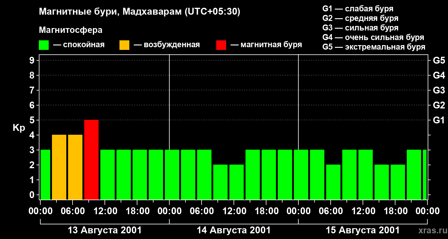 Магнитные бури в Мадхавараме 15 августа 2001 года