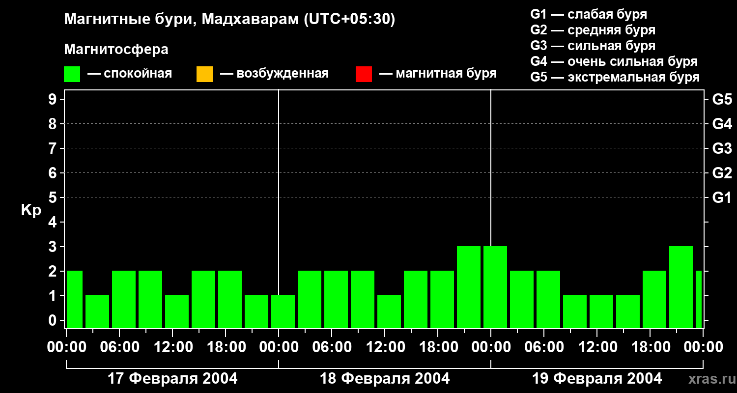 Магнитные бури в Мадхавараме в феврале 2004 года