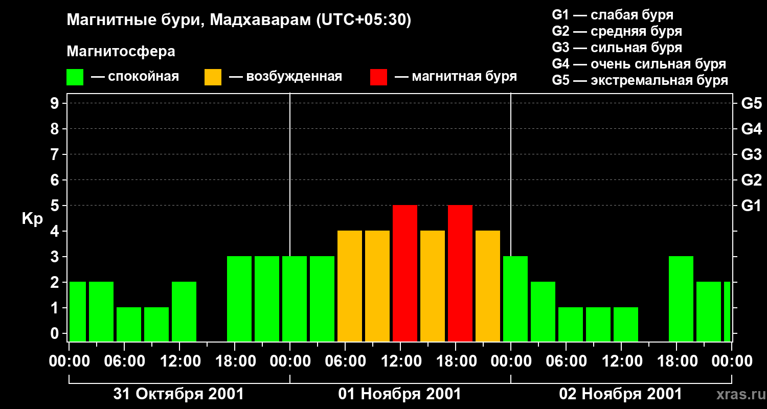 Магнитные бури в Мадхавараме 2 ноября 2001 года
