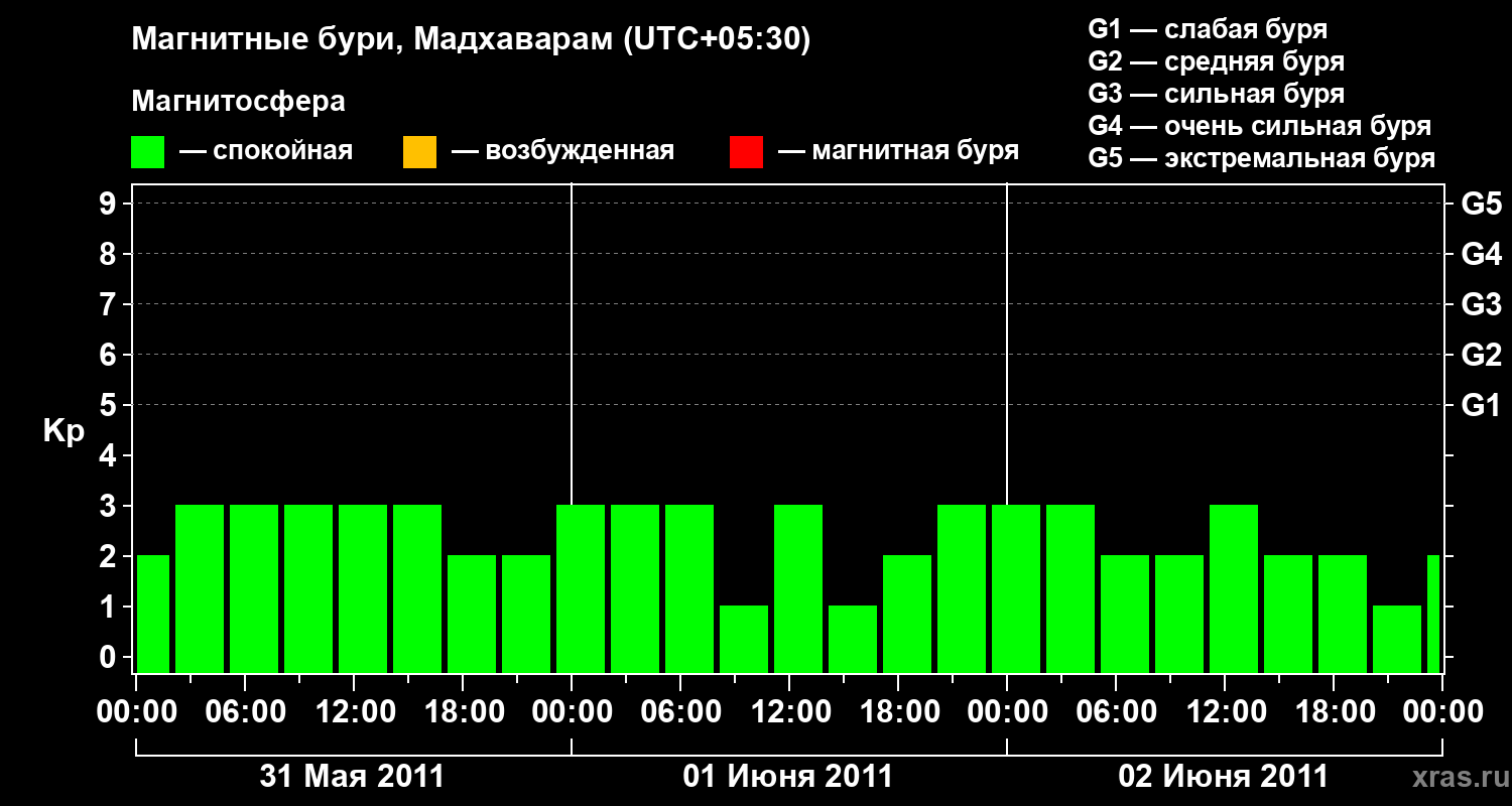 Магнитные бури в Мадхавараме 2 июня 2011 года